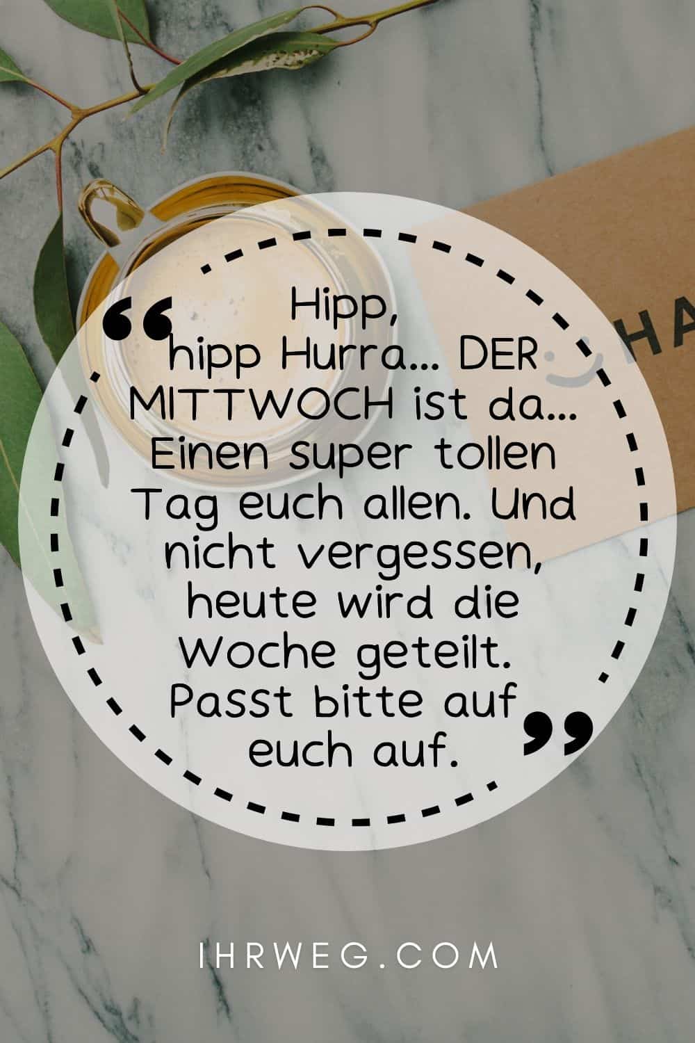 30. Hipp, hipp Hurra… DER MITTWOCH ist da… Einen super tollen Tag euch allen. Und nicht vergessen, heute wird die Woche geteilt. Passt bitte auf euch auf.